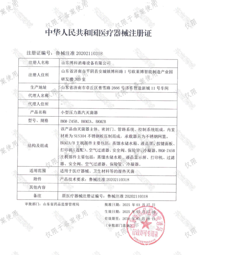 批準(zhǔn)文號:魯械注準(zhǔn)20202110318