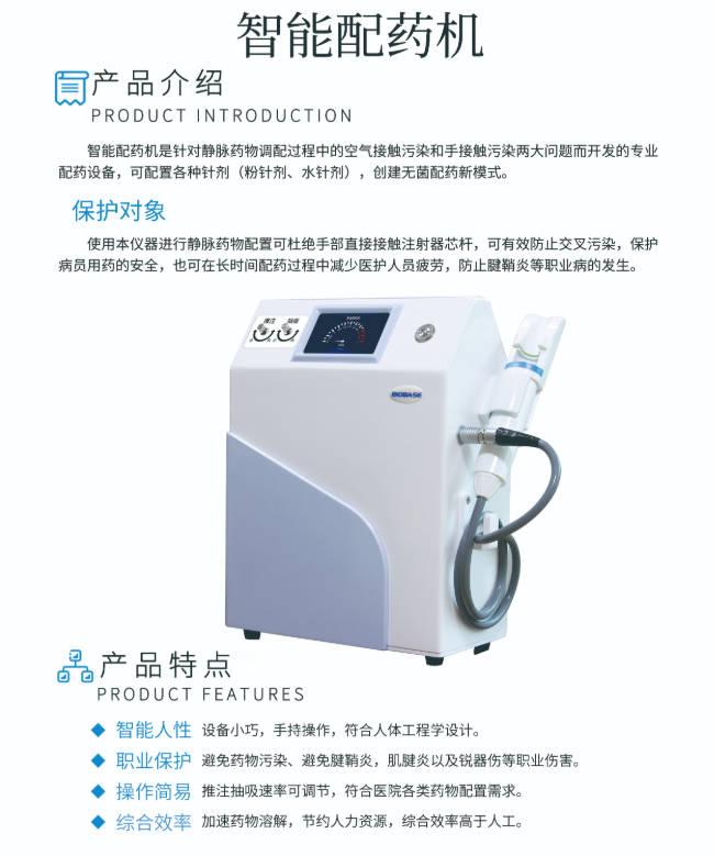 設備小巧,手持操作,避免藥物污染,符合人體工程學設計。